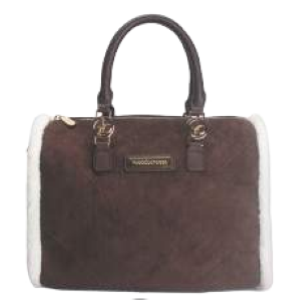 BORSA BAULETTO COFFEE DOPPIO MANICO E PELLICCIA BEIGE AI BORDI